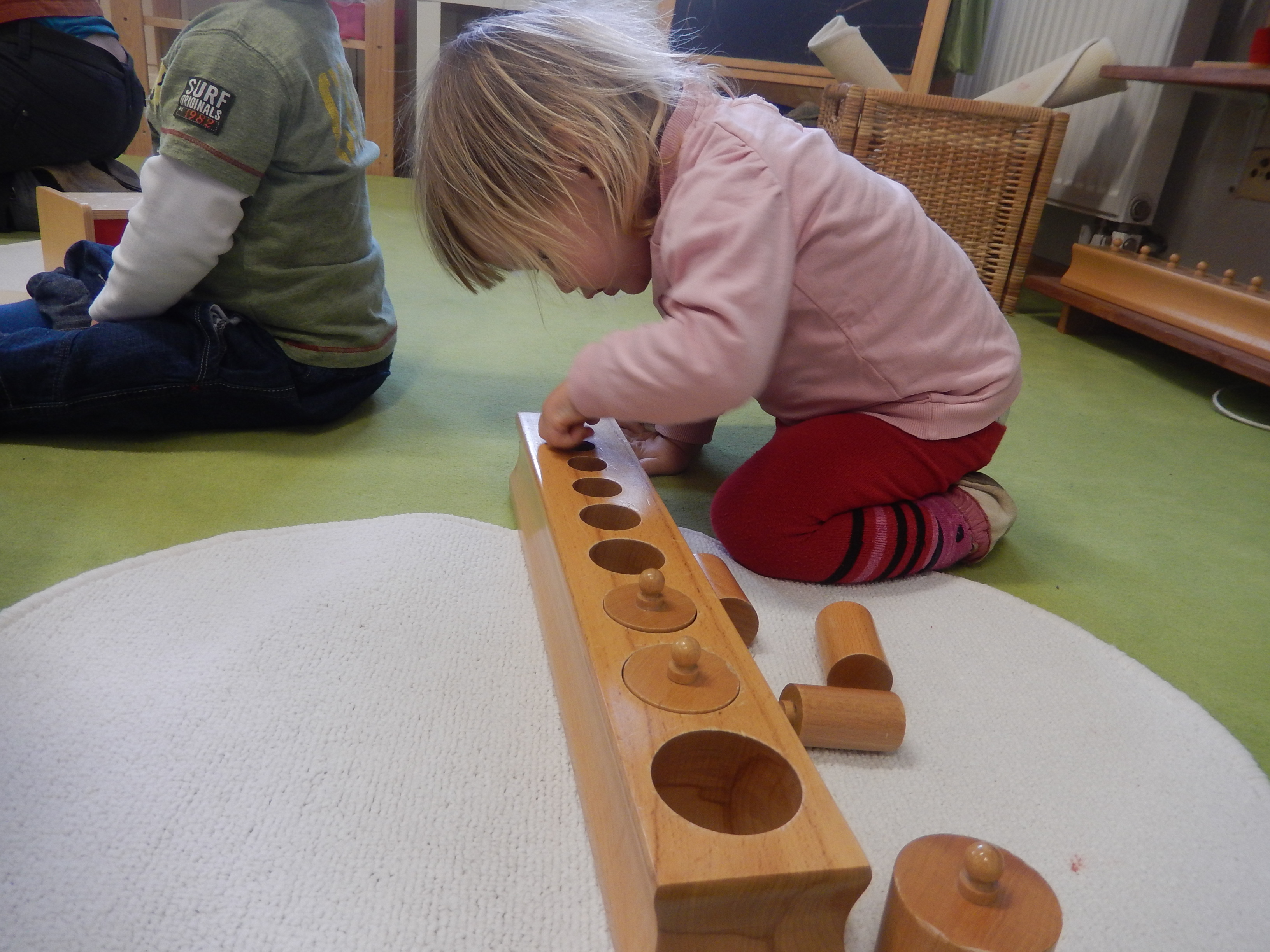 V rámci minimaaty seznamujeme děti s Montessori pomůckami, přístupem, dáváme prostor i na komunitním kruhu – u nás stále elipsa, je možné vyzkoušet i play wisely.